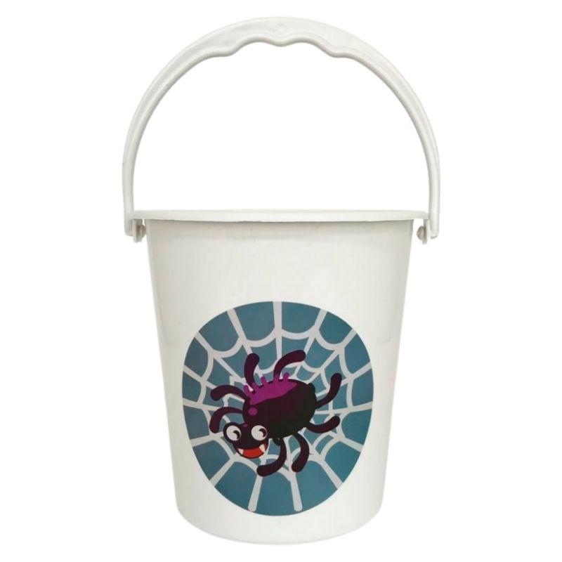 🕷️ Aranha na teia – Balde branco com estampa colorida de aranha fofa.