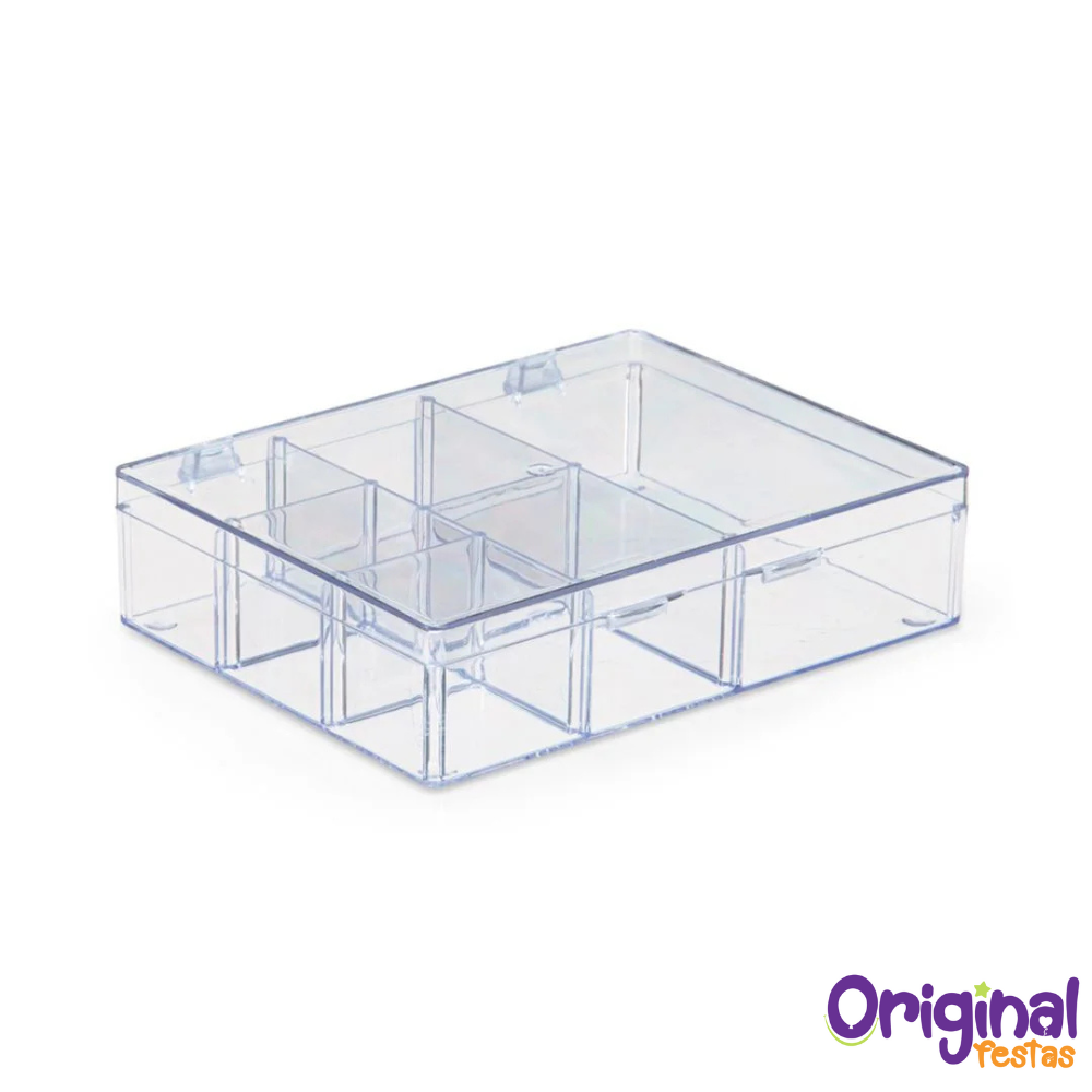 A Caixa Divisória Transparente 14x11x3,5 cm é perfeita para organizar, armazenar e expor pequenos itens com praticidade e elegância. Produzida em material resistente e totalmente transparente, permite visualizar o conteúdo com facilidade, sendo ideal para lembrancinhas, doces, acessórios e itens de bijuteria.