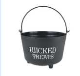 Deixe a sua festa de Halloween ainda mais assustadoramente divertida com este caldeirão preto decorativo! Ele é perfeito para servir doces, balas ou até mesmo usar como parte da decoração temática. Com a inscrição “Wicked Treats” na frente, traz um toque especial e autêntico para sua festa.