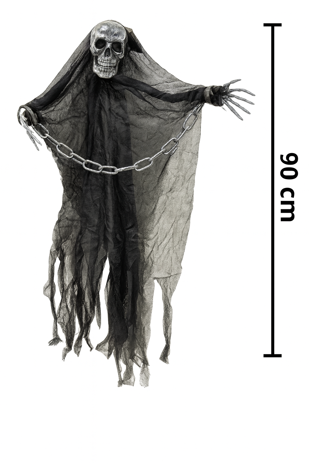 Descrição do Produto – Fantasma Decorativo Halloween com Corrente 90cm 👻🕸️