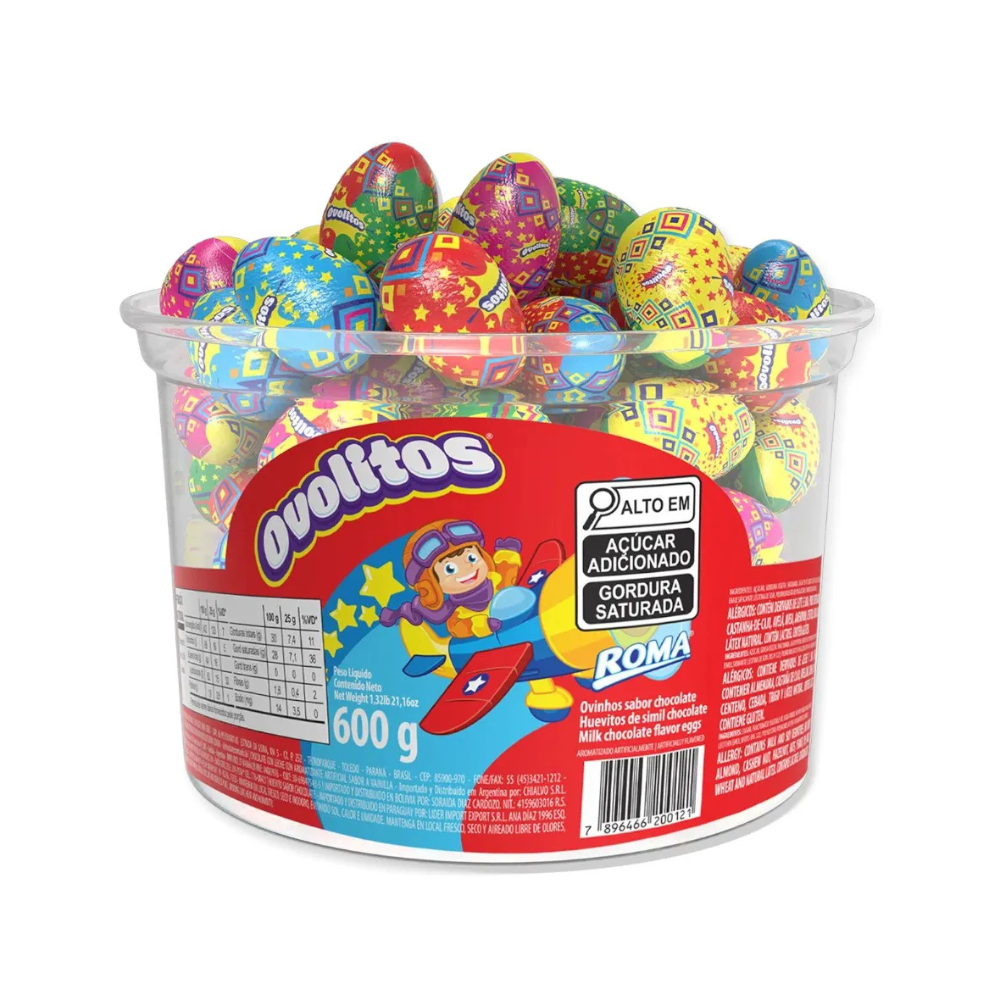 Os Ovolitos Roma são deliciosos ovinhos de chocolate ao leite, envoltos em embalagens coloridas e divertidas, perfeitos para alegrar qualquer festa ou comemoração. Ideais para usar em lembrancinhas, caças ao tesouro, decorações de mesa e, claro, para saborear a qualquer hora. Uma explosão de sabor em cada mordida que encanta crianças e adultos!