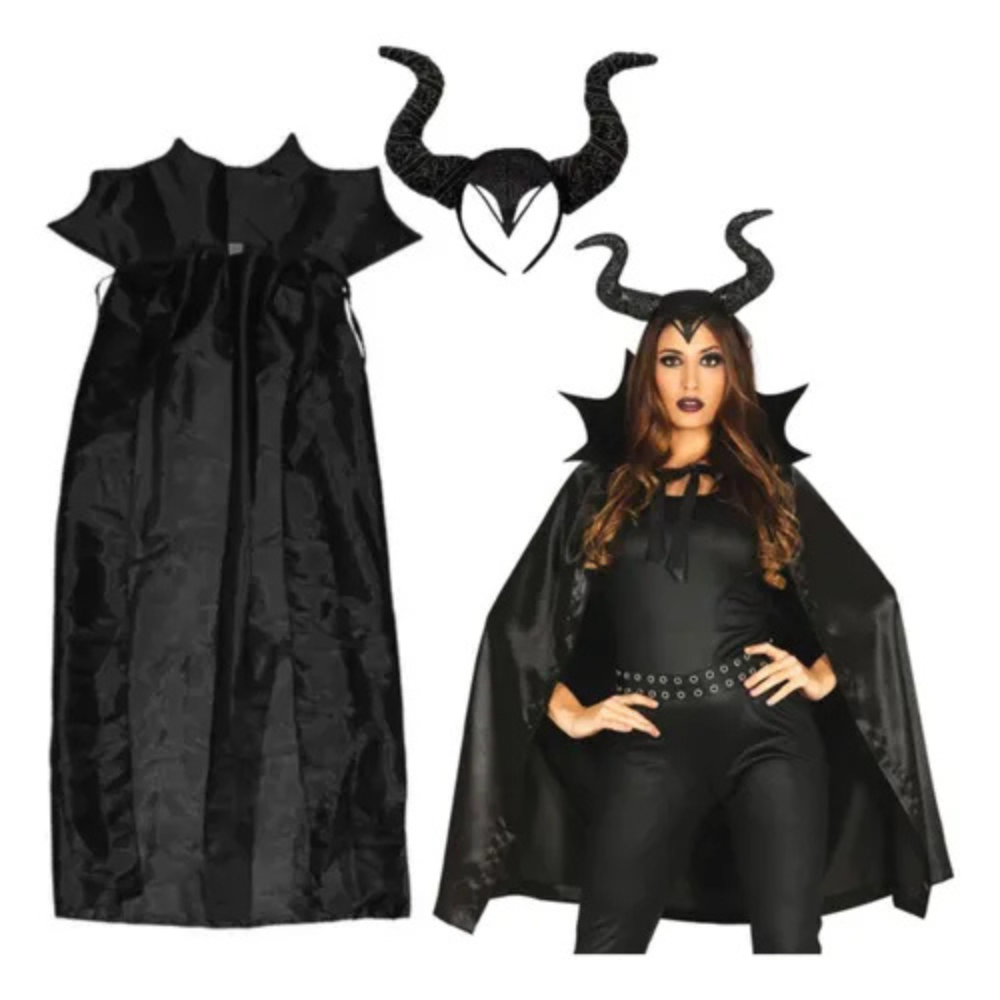 Transforme-se na vilã mais poderosa dos contos de fadas com o Kit Malévola! Ideal para festas à fantasia, Halloween, ensaios temáticos e eventos de cosplay, este conjunto traz todo o charme e mistério da personagem icônica.