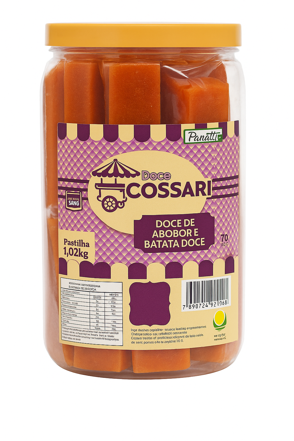 Um clássico da tradição brasileira em uma embalagem prática e irresistível! O Doce Cossari de Abóbora e Batata Doce traz a combinação perfeita da cremosidade da batata doce com o sabor suave e adocicado da abóbora. Produzido em pastilhas individuais, é ideal para servir em festas, reuniões familiares ou simplesmente para saborear no dia a dia.