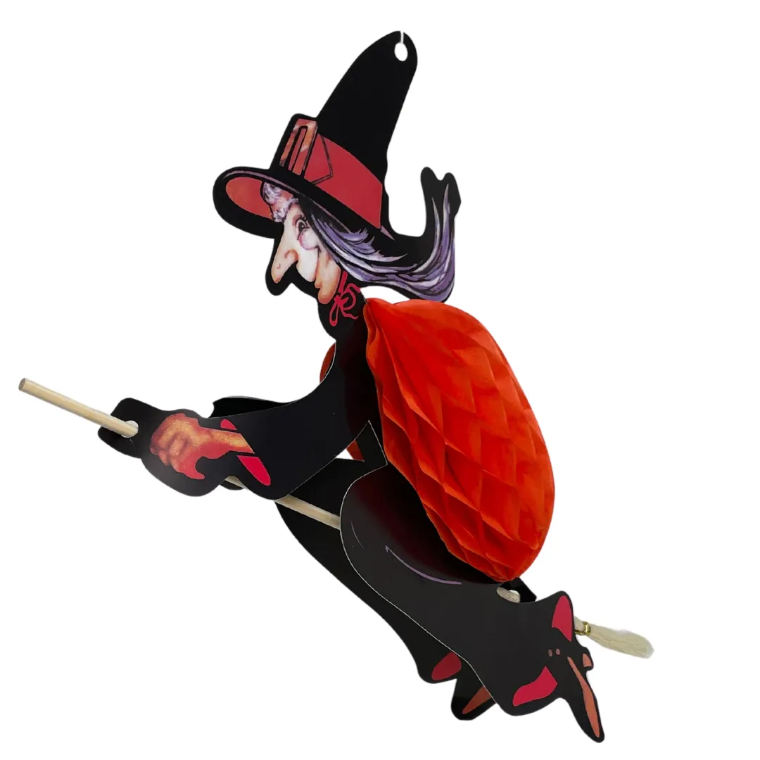 Dê um toque mágico e assustador à sua decoração com a Bruxa Decorativa com Sanfona Halloween! Produzida em papel cartão com detalhe sanfonado em 3D, ela traz a clássica figura da bruxa voando em sua vassoura, perfeita para pendurar em ambientes internos e externos.