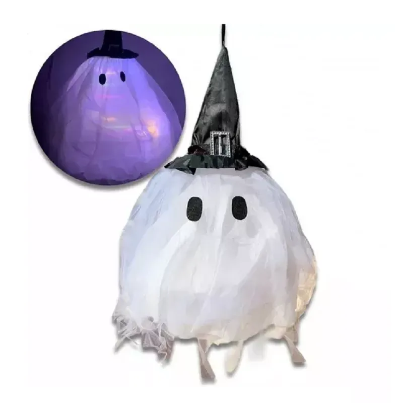 👻 Fantasma Decorativo com Luz LED e Chapéu de Bruxa ✨