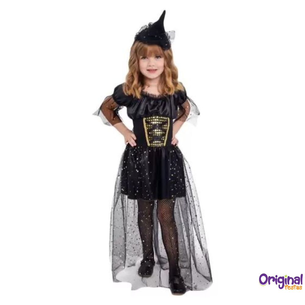 🖤 Uma fantasia linda que combina conforto e encanto para as pequenas bruxinhas arrasarem!