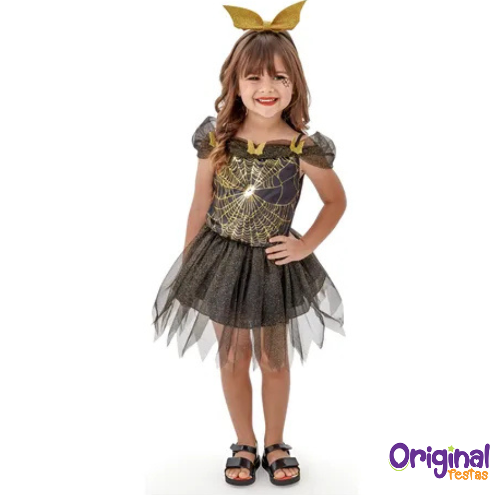 Vestido Infantil Bruxinha Bibi Dourada 🕸️✨