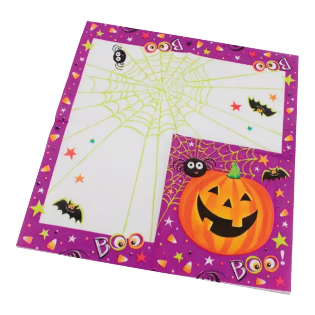 Deixe sua mesa ainda mais divertida e temática com o Guardanapo de Papel Halloween Boo!. Com estampa colorida de teia de aranha, abóbora, morcegos e detalhes vibrantes, ele é perfeito para compor a decoração da sua festa e encantar seus convidados.