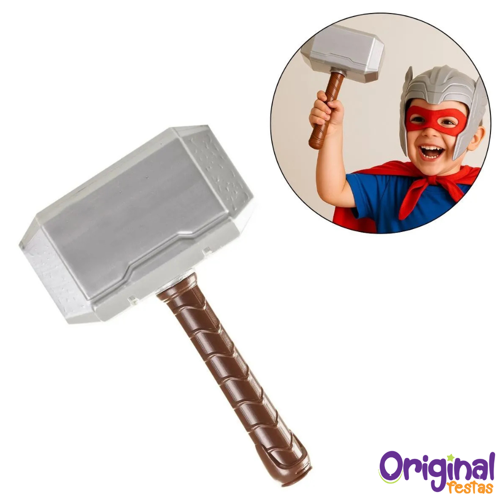 O Martelo Decorativo Thor é o item perfeito para compor decorações de festas temáticas de super-heróis! Inspirado na poderosa arma do deus do trovão, ele traz um visual imponente com acabamento prateado e cabo marrom detalhado. Ideal para complementar mesas principais, painéis e ensaios fotográficos, além de ser uma ótima opção para brincadeiras infantis e fantasias.