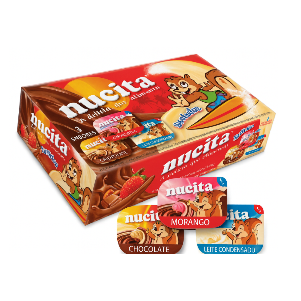 A clássica e deliciosa Nucita é sucesso garantido entre crianças e adultos! Cremosa e irresistível, ela vem em embalagens práticas, perfeitas para matar a vontade de um docinho a qualquer hora. Com sabores variados de Chocolate, Morango e Leite Condensado, é ideal para festas, lembrancinhas e consumo diário.