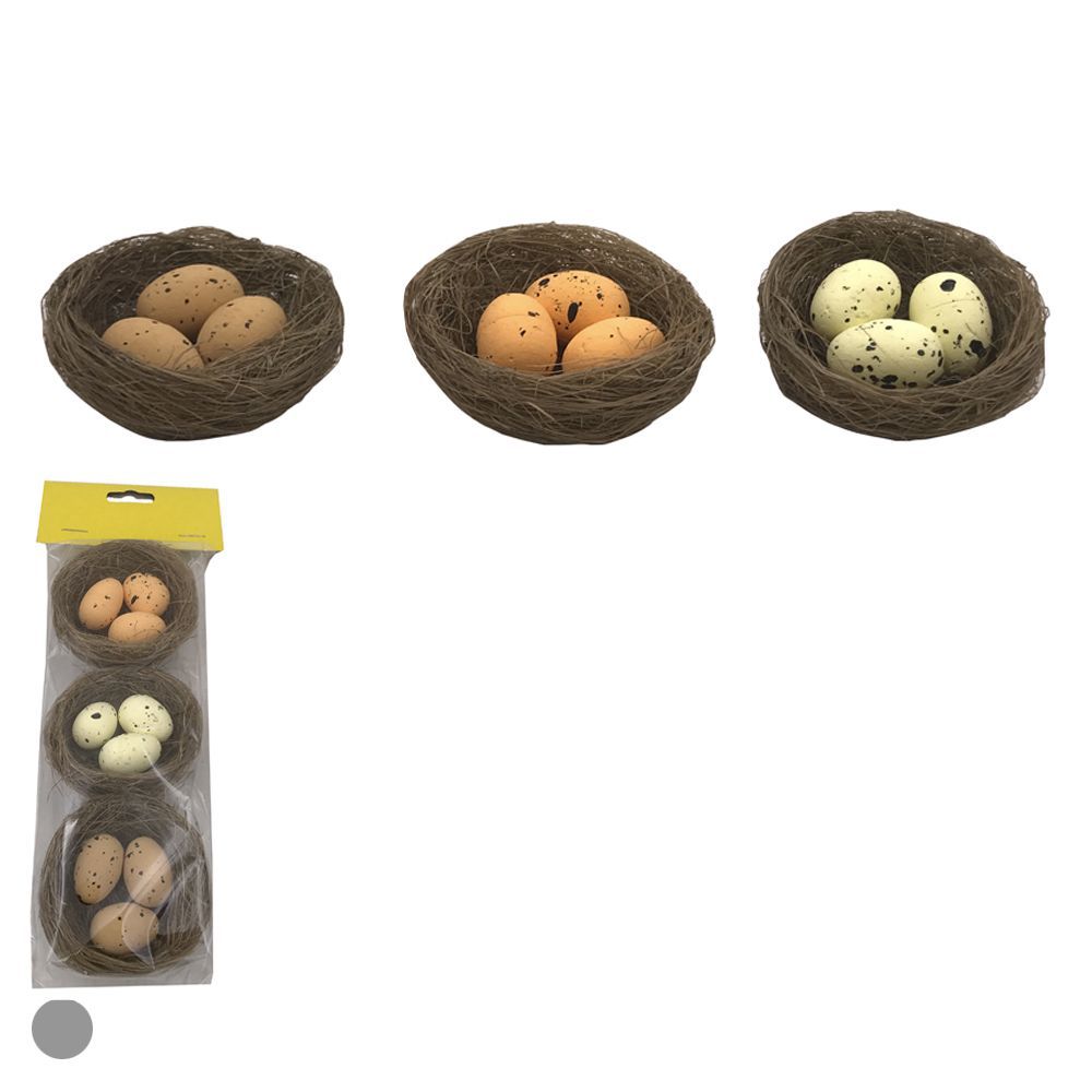 PASCOA ENFEITE NINHO C/ OVO C/3 UND (CORES) 6cm
