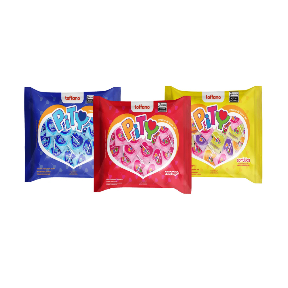 Pacote com pirulitos em formato de coração nos sabores sortidos: morango, uva, laranja e abacaxi. Uma explosão de cores e sabores para animar qualquer festa. Cada embalagem contém 200g.