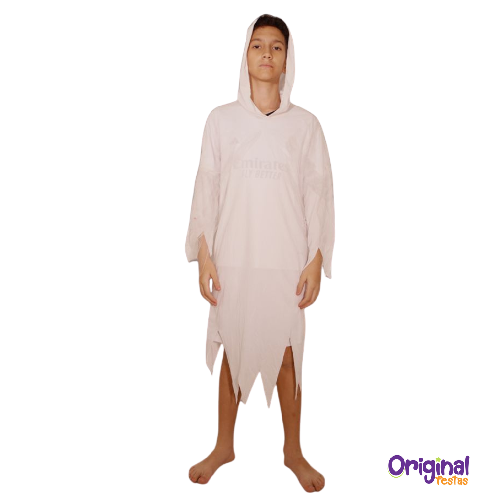 Com design leve e soltinho, possui capuz e acabamento em pontas rasgadas, garantindo o visual clássico e assustador dos fantasmas. Ideal para festas temáticas, escolas e brincadeiras de arrepiar!