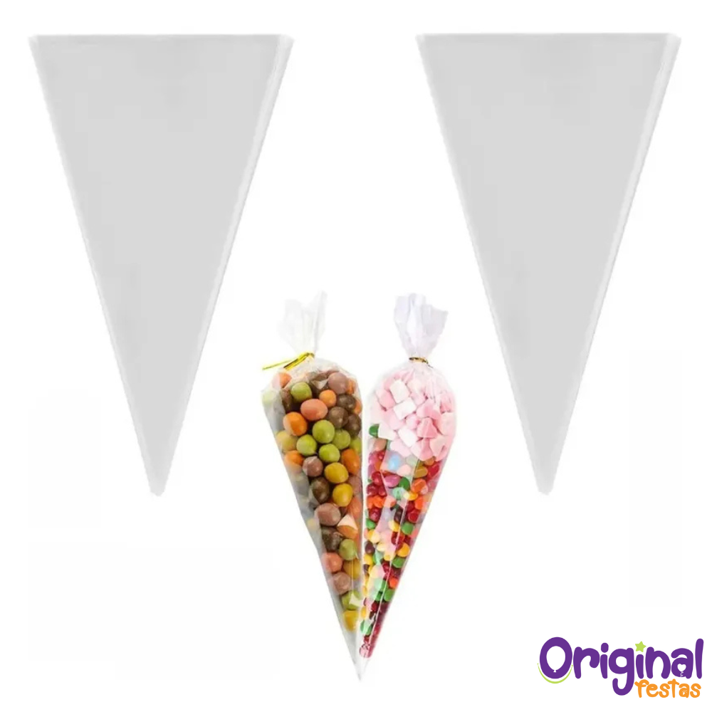 O Saco Cone Incolor é ideal para montar lembrancinhas, embalagens de doces, balas, pipocas e guloseimas em geral! Seu formato cônico dá um toque especial à decoração e facilita o manuseio. Produzido em material plástico transparente e resistente, é perfeito para festas infantis, eventos temáticos e datas comemorativas.