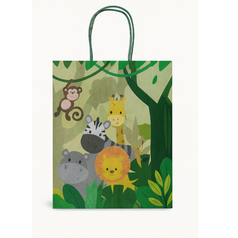 Sacola Kraft Temática – Modelos Fazendinha, Safari e Aranha 🛍️