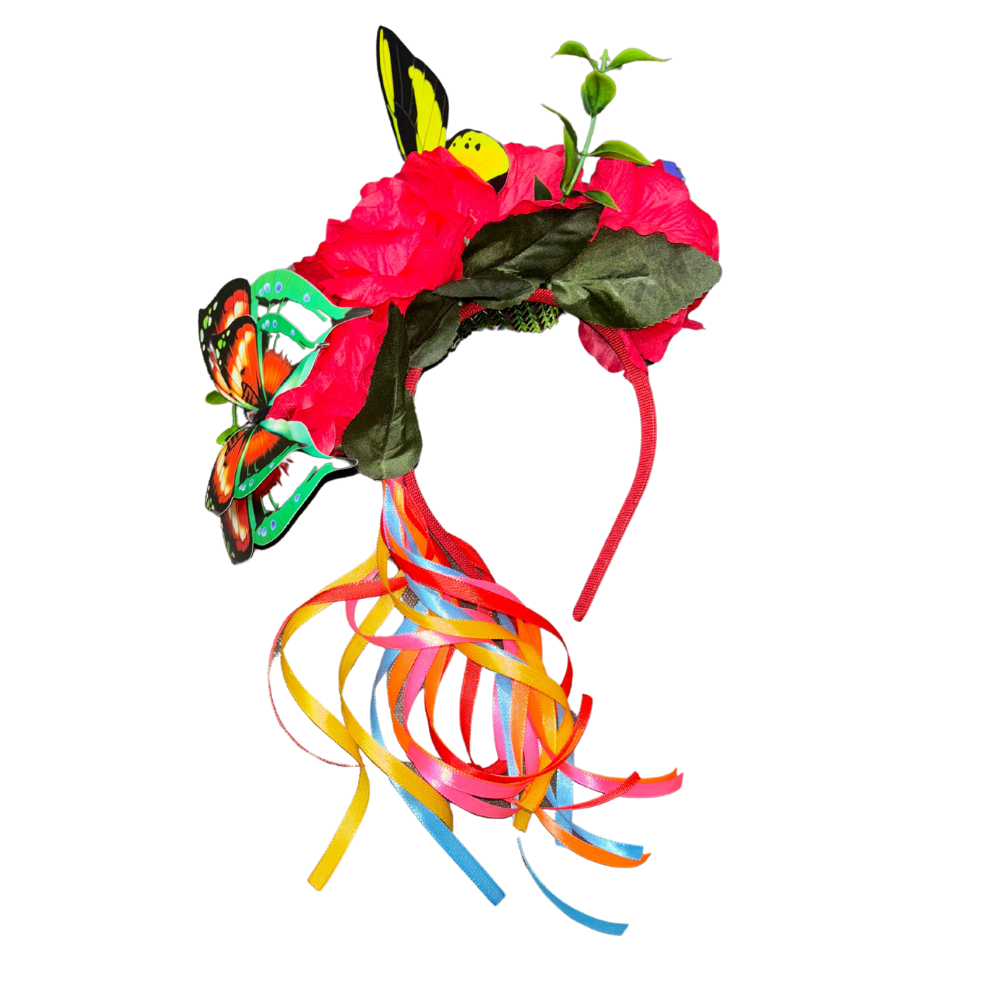 A Tiara Flor com Borboleta é o acessório perfeito para dar um toque delicado e vibrante ao seu look de Carnaval e outras festas temáticas! Com materiais leves e confortáveis, ela combina charme e diversão em um único item.