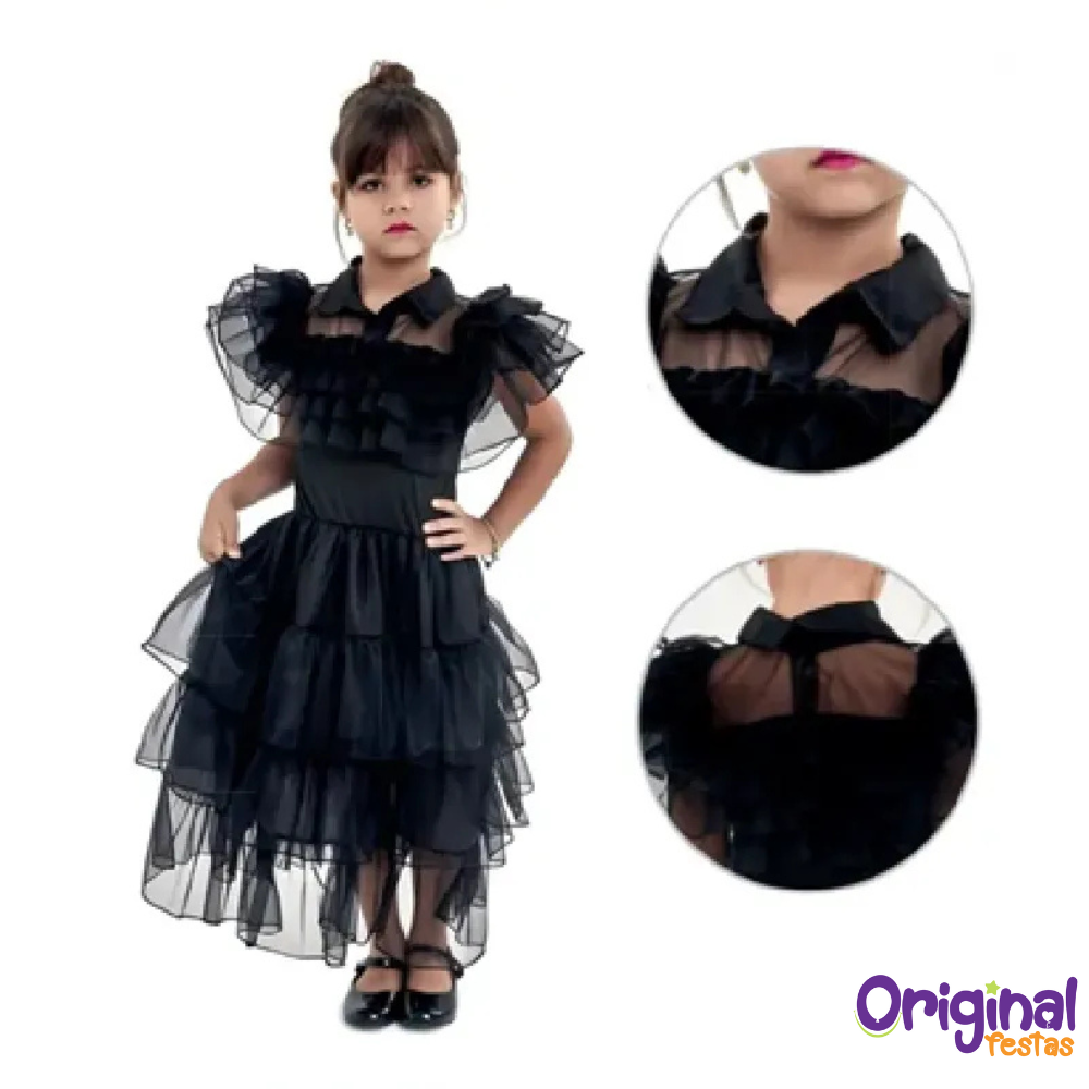 Elegante e encantador, o Vestido Infantil Vavazinha Luxo é perfeito para as pequenas que adoram um visual sofisticado e cheio de estilo! Com design inspirado em um estilo moderno e sombrio, ele une delicadeza e personalidade em uma peça única — ideal para festas temáticas, apresentações e eventos especiais.